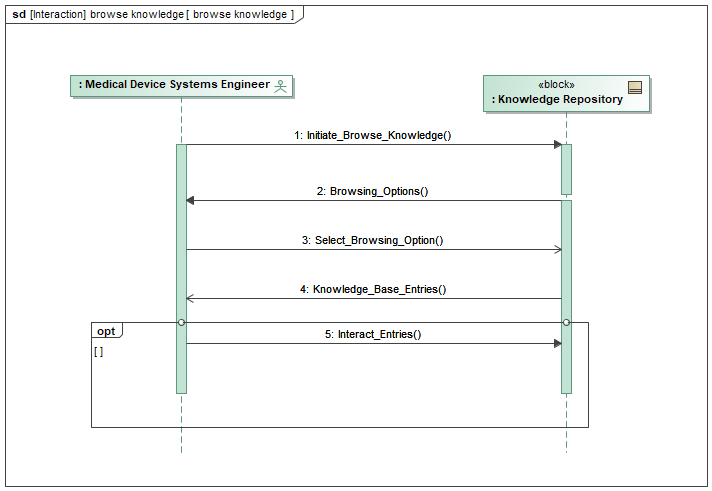 Figure 12.6 depicts the interaction between a Medical Device Systems Engineer (MDSE) and a Knowledge Repository system during the browsing of knowledge base entries.