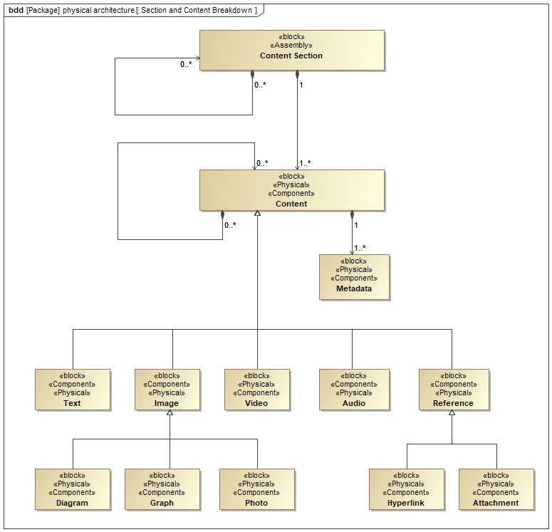 Figure 13.2 is SysML block definition diagram depicts the content structure of the MDSE-KR. It represents the various content types and their interrelationships.