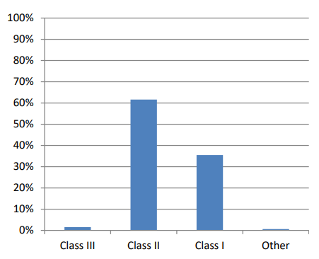 Class I devices and “Other” devices each make up a smaller portion of registered devices.