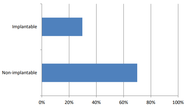 Figure 8.3 is a line graph that shows the percentage of implantable and non-implantable medical devices.